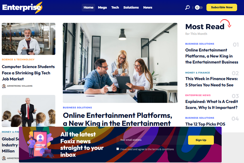 At Foxiz Premium Themes, we create cutting-edge WordPress themes designed for publishers, bloggers, online magazines, and content-driven businesses. Our mission is simple: empower creators with beautifully crafted, lightning-fast, and fully customizable themes that elevate their digital presence. With a focus on performance, SEO, and modern design, our themes combine advanced functionality with user-friendly tools—making professional website building accessible to everyone, from beginners to seasoned developers. We believe every website deserves a unique identity. That’s why Foxiz Premium Themes are built with flexible layouts, intuitive customization options, and seamless compatibility with today’s most powerful plugins. Whether you’re running a news portal, tech blog, lifestyle magazine, or niche media site, our themes help you deliver content that stands out. Backed by a dedicated support team and continuous updates, Foxiz Premium Themes ensures your website stays fast, secure, and ahead of industry trends.